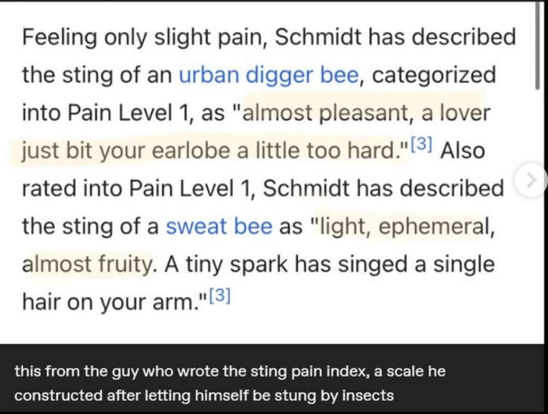 I’ve been stung by a velvet ant (although not a glorious one) and that’s honestly pretty spot on. I still remember that hot poker feeling, and they move so fast I didn’t even see the sting happen! That was my first lesson that fuzzy is not always friend 🥲