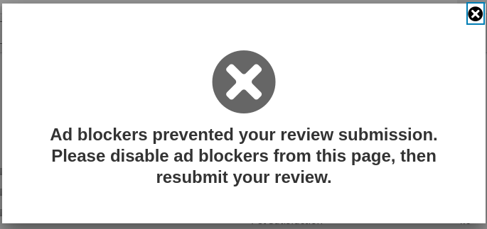 “Ad blockers prevented your review submission.”