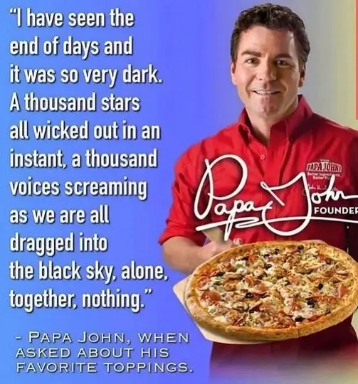 arrow-up1386arrow-down1imagePapa Johnlemmy.worldthemaninblack@lemmy.world to memes@lemmy.world · 12 days agomessage-square23fedilink