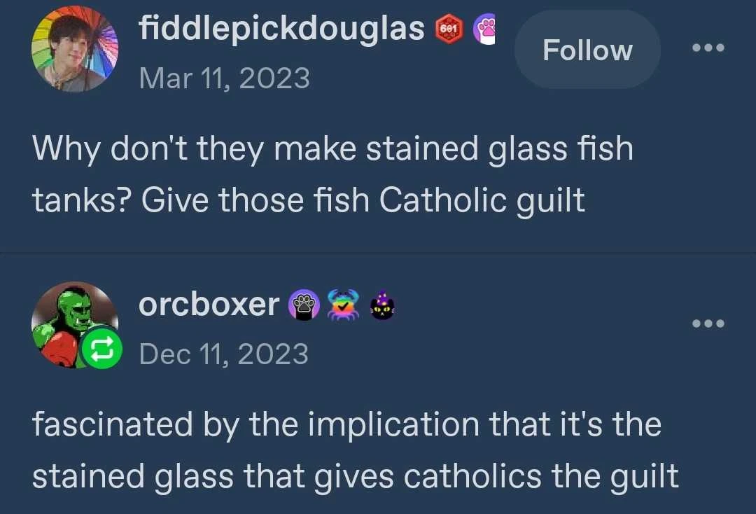 A Catholic’s natural state is guilt. They can look at toast and feel guilty.