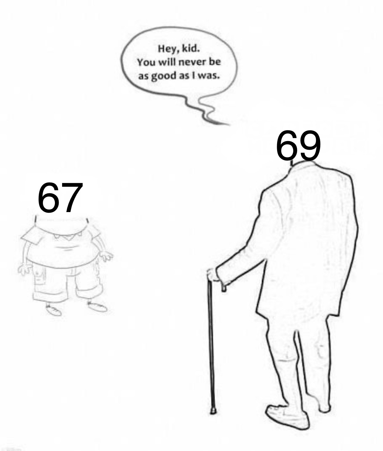 Gotta love 67. It’s so ubiquitous it’s become meaningless. From basketball to 67 kid, it’s pretty much whatever anyone wants it to be.