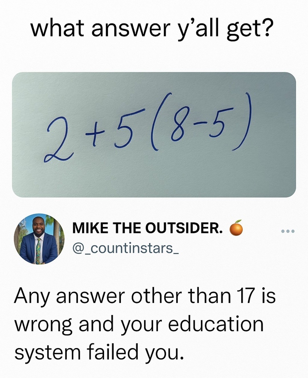 I prefer BM-DAS, no one’s out here doing exponents, and no one calls brackets “parentheses”…