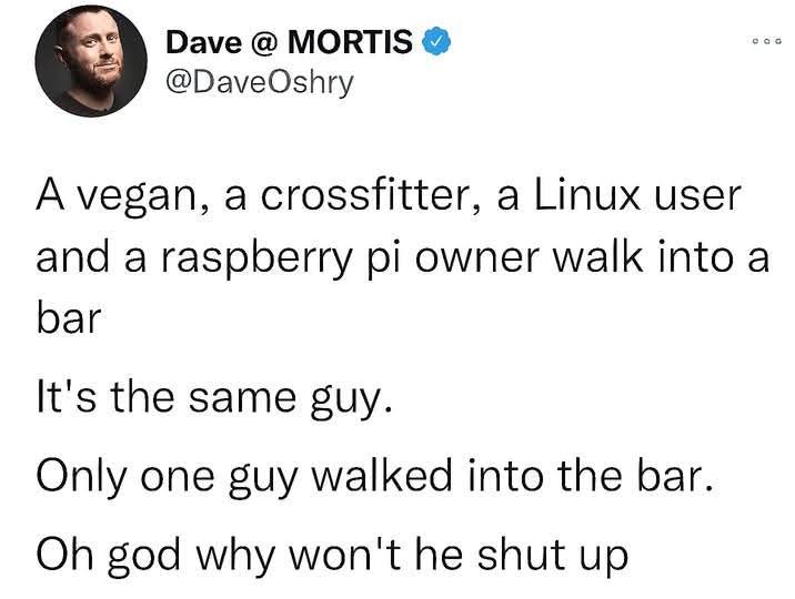 minus-squarepsycho_driver@lemmy.worldlinkfedilinkarrow-up5·5 days agoHah. Yep I know this guy too except for maybe the crossfitter part. He’d definitely be a crossfitter if he wasn’t lazy.