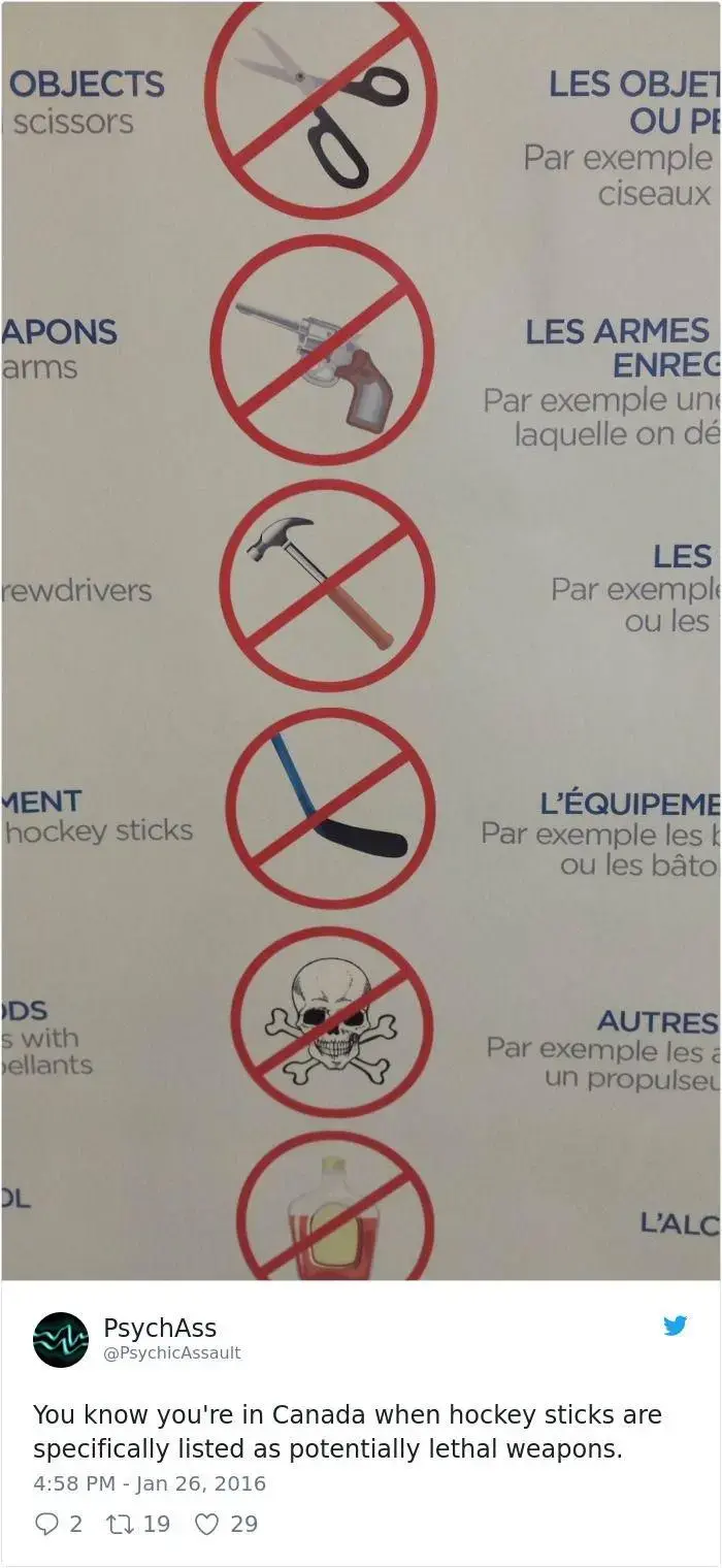 Fact: Every Canadian has a hockey stick on them at all times.