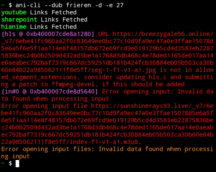 Uri@infosec.pub to Piracy: ꜱᴀɪʟ ᴛʜᴇ ʜɪɢʜ ꜱᴇᴀꜱ@lemmy.dbzer0.comEnglish · edit-212 days ago[fixed] Can anyone help me? I'm getting this error while downloading with ani-cli. I'm using it on termuxinfosec.pubimagemessage-square7fedilinkarrow-up135arrow-down11