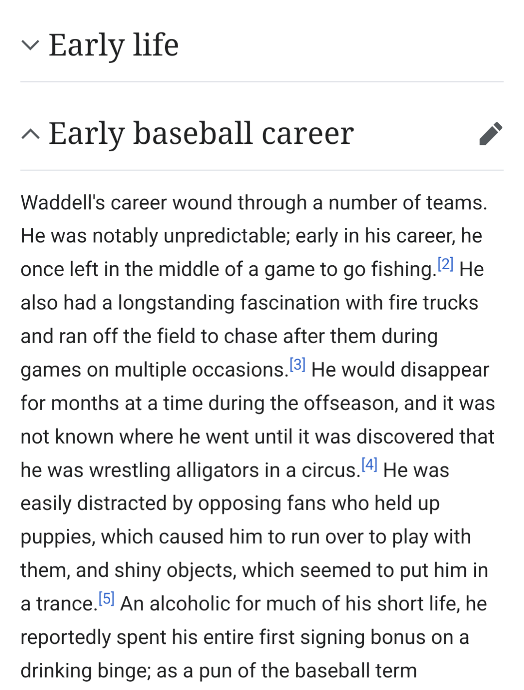 Recent commentators such as Bill James have suggested that Waddell suffered from a developmental disability, mental retardation, autism, or attention deficit disorder (ADD). Not much was known about these mental conditions, or their diagnoses, at the time.