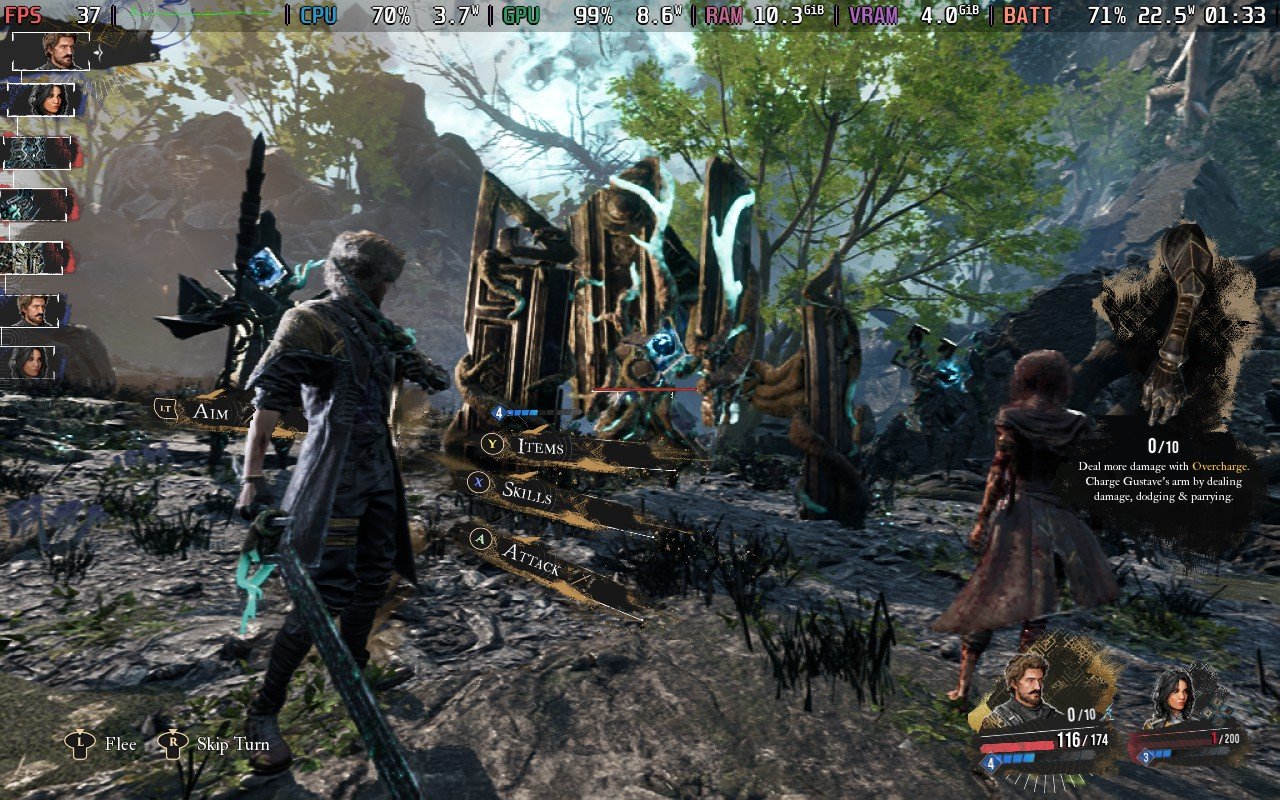 Actually pretty damn good. Considering the difficulty I had getting frames out of E33 on desktop, having it play reasonably on the go is impressive. 60 fps @ 4K made my PC sound like a vacuum cleaner and was warming up the whole house; really needs some of the upscaling trickery to be comfortable to play.