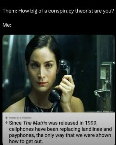 Trin also slaps her hand against that phone booth’s glass milliseconds before being aerosolized by truck after the agents tracked her shit on a landline, making landlines just about (but not quite) the shittiest way to leave the matrix, but go on.