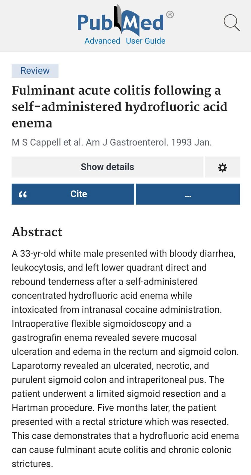 tbf this uses a lot of medical jargon that most people who aren’t doctors will never need. put simply, it’s a case of a man who put hydrochloric acid in his ass (owie) while high from snorting cocaine