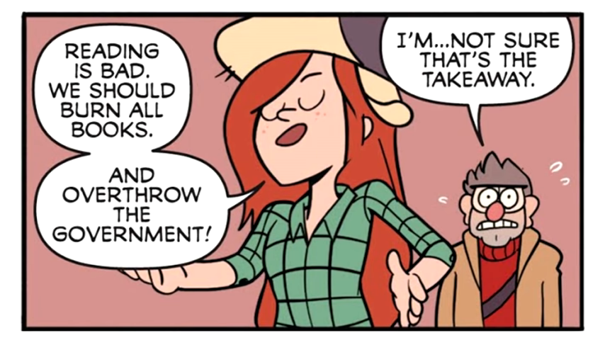 I don’t think it’s wise to let a young woman fill her head with a bunch of ideas from those woke books. She should be filling her head with ideas from The Good Book™! But only the parts about hating gay people that Paul wrote, none of that woke commie nonsense that Jesus talked about.