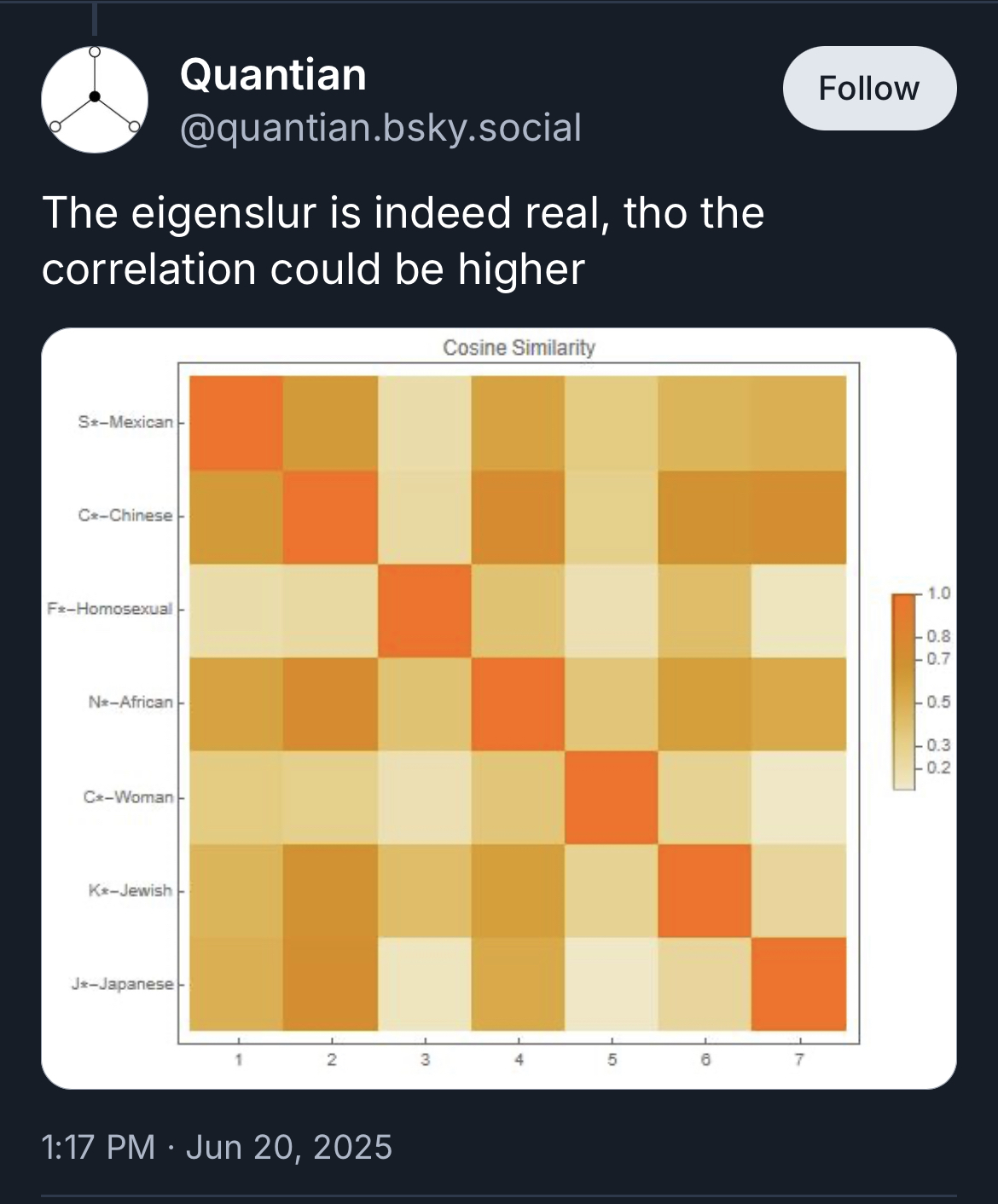 So they’re all very similar. This is actual natural language processing being used, but it’s a shit post and the graphics aren’t very clear.