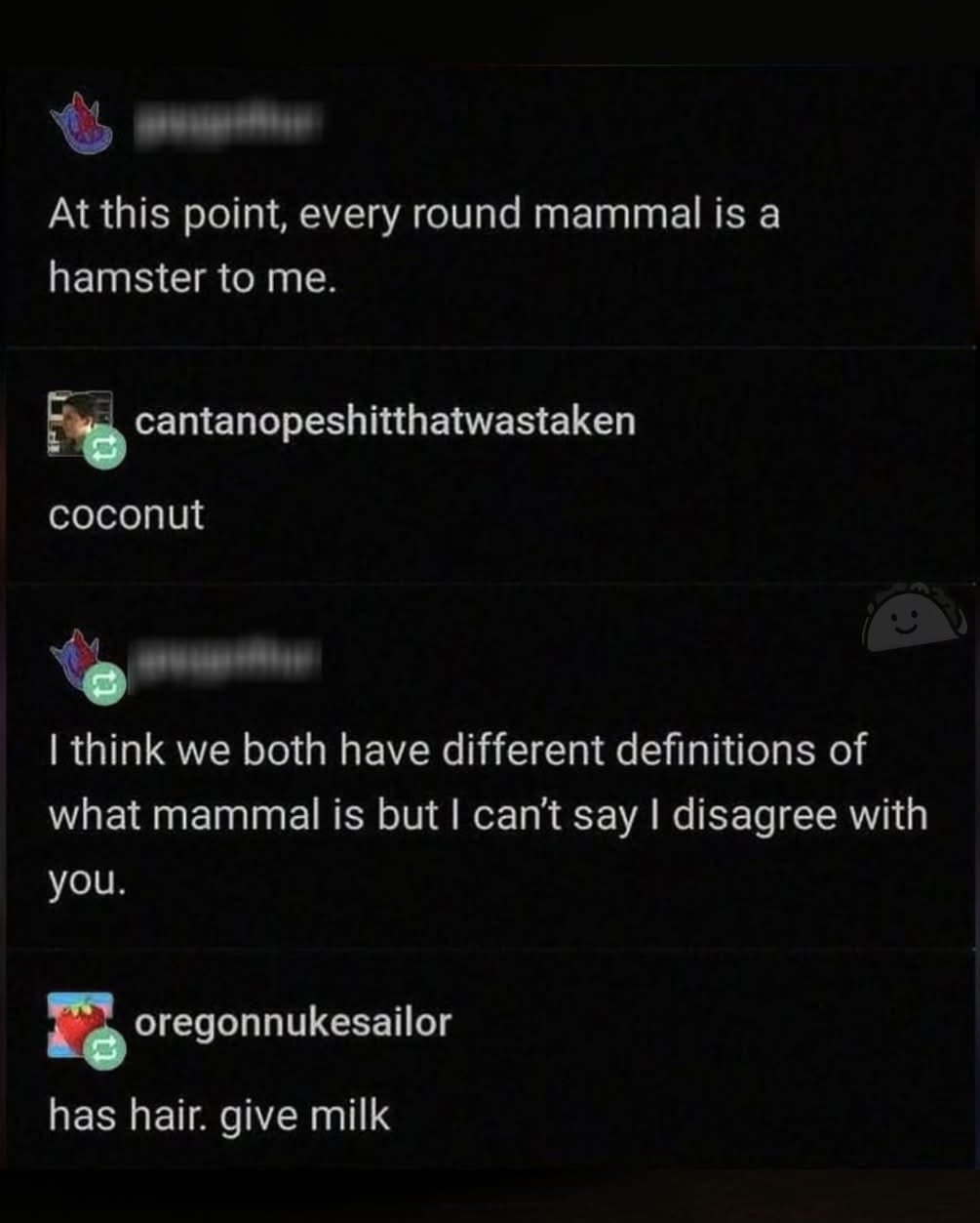 minus-squarestiffyGlitch@lemmy.worldlinkfedilinkEnglisharrow-up3·7 days agoso were drinking the coconut’s seed? that’s…that’s disgusting. I’m never drinking coconut “milk” again imma go drink some coconut seed