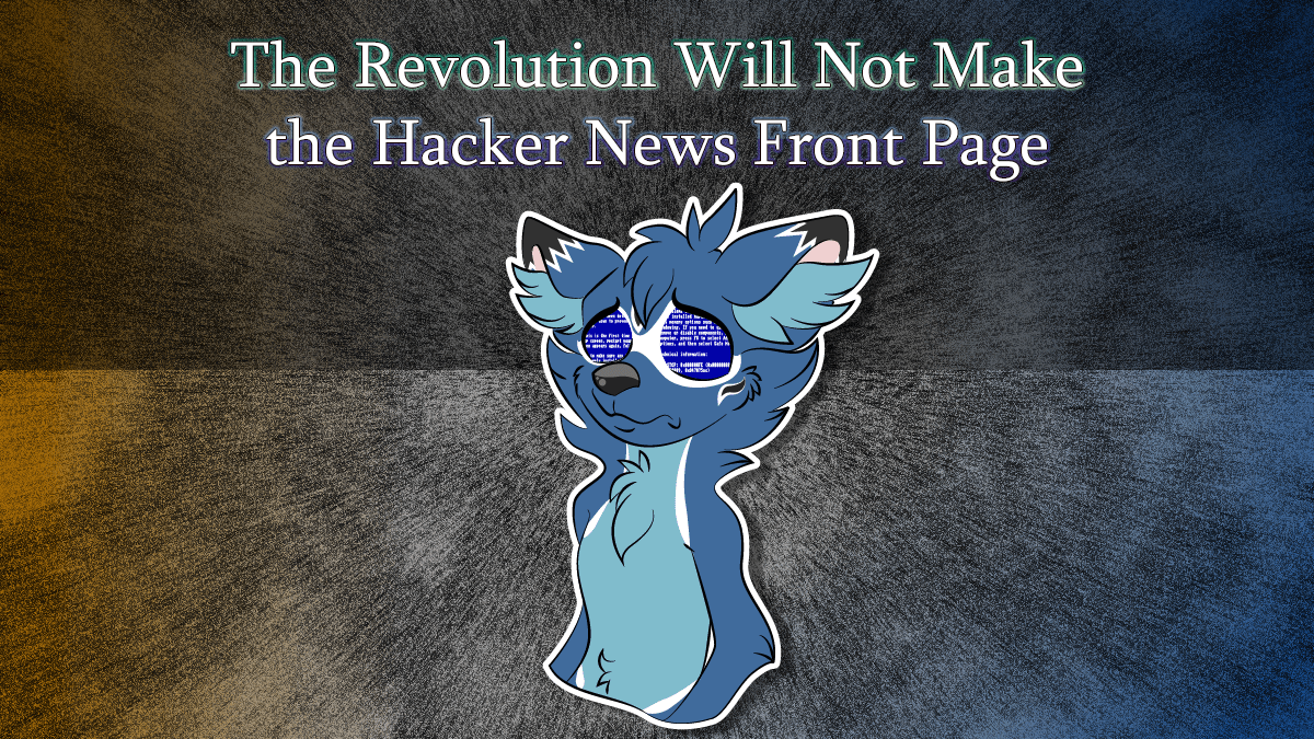 Twipped@l.twipped.social to Fediverse@lemmy.worldEnglish · 9 days agoThe Revolution Will Not Make the Hacker News Front Pagesoatok.blogexternal-linkmessage-square17fedilinkarrow-up1175arrow-down115