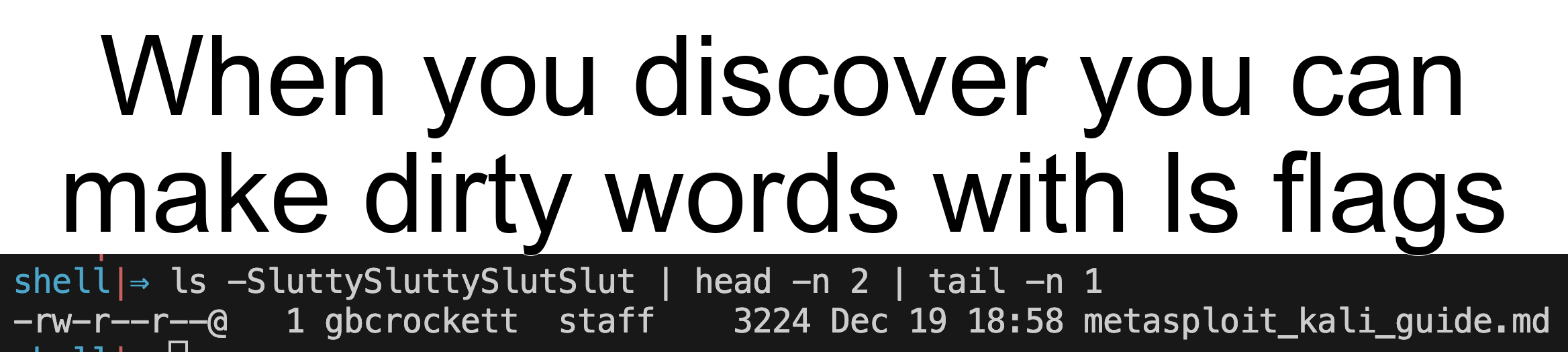 ls -shit. ^^yeah that’s good
