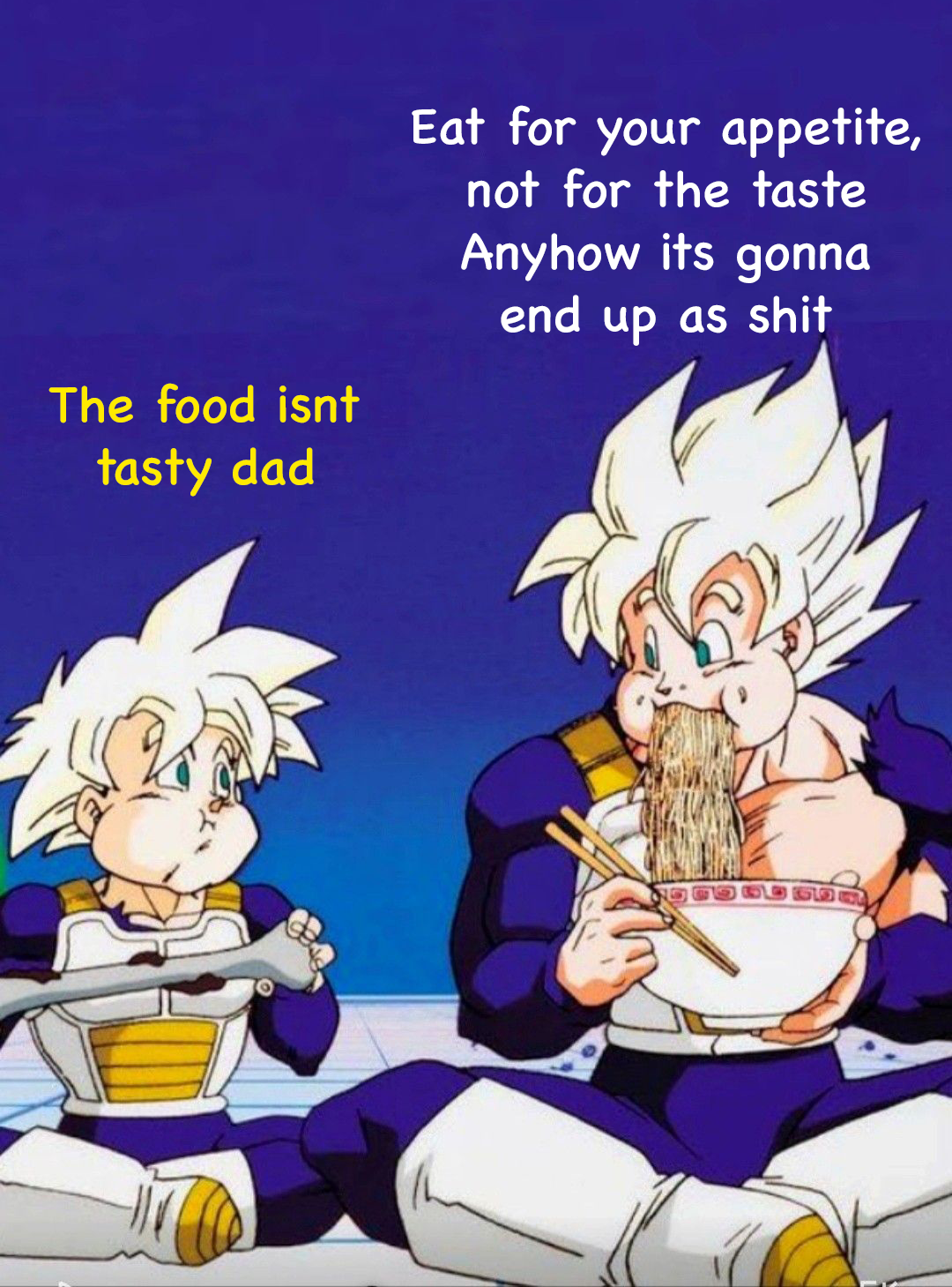 Goku was burning through a Type II Kardshev civilization’s worth of energy. He was hongry. Flavor was definitely secondary.