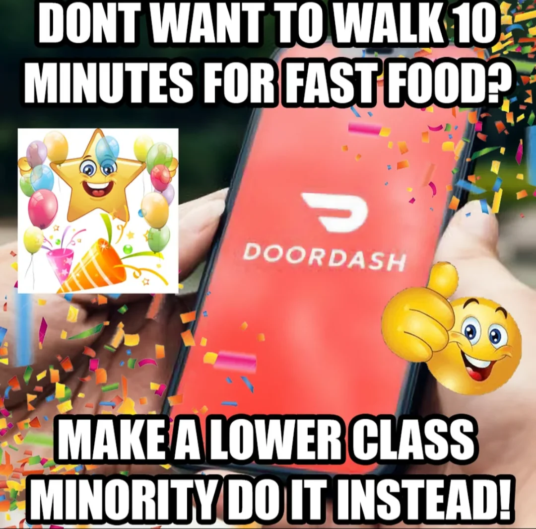 (It’s far more racist to assume only minorities work for Door Dash than it is to imply whatever the fuck this shit tier meme is trying to say)