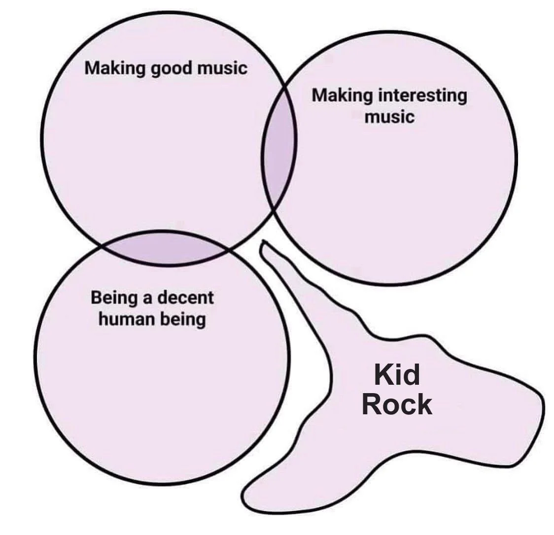 I love that the “circle” for kid rock looks like his hand got caught in a hydraulic press.