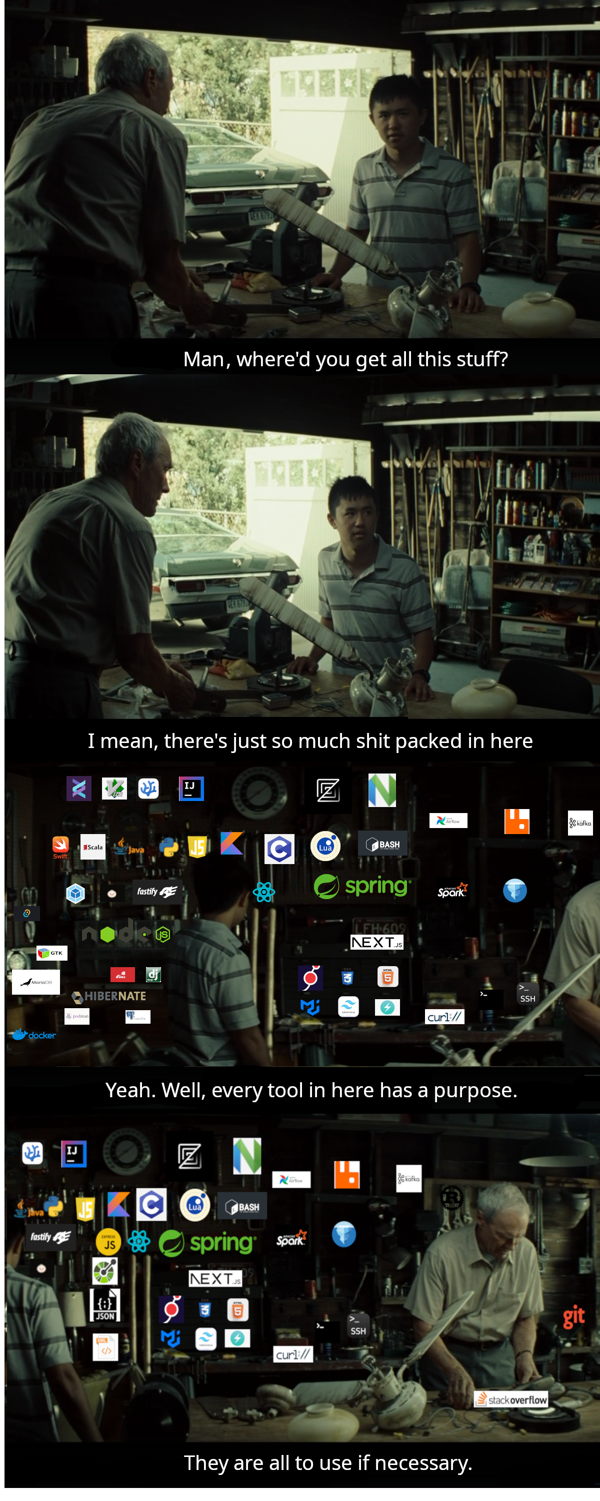 Besides that, Java is never the right tool. It’s always close enough but never quite right ; just like you can technically replace every single tool with a knife… But you shouldn’t. (Except a knife does have a proper use, Java does not)
