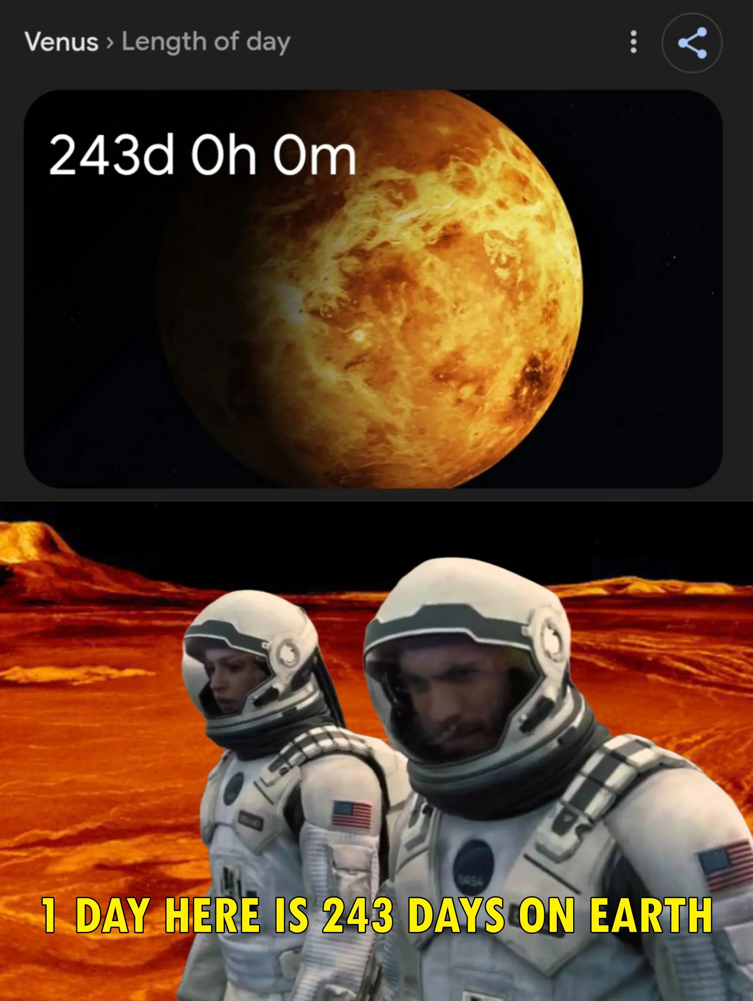 That, of course, confused me. Further research showed that 116 days is a solar day, when the sun is at the same place in the sky again. But a sidereal day, when the planet completed a rotation on its axis, is indeed 243 Earth days.