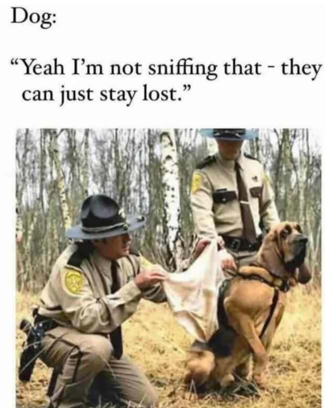 minus-squareLasherz@lemmy.worldlinkfedilinkarrow-up2·3 months agoPoor bloodhound could smell those undies from a mile away.