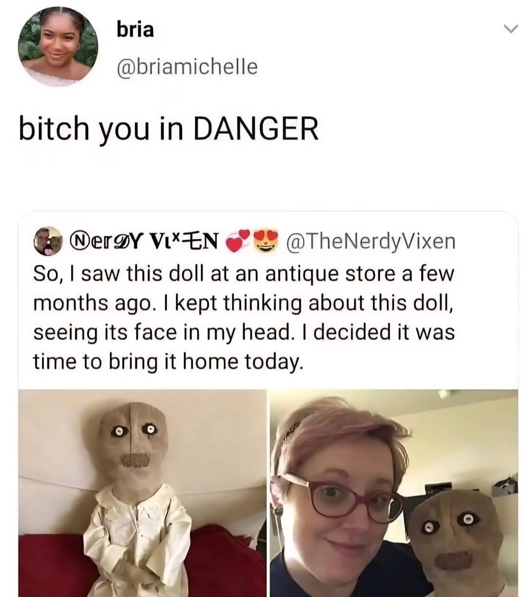 Who’s in danger? The doll or the woman?