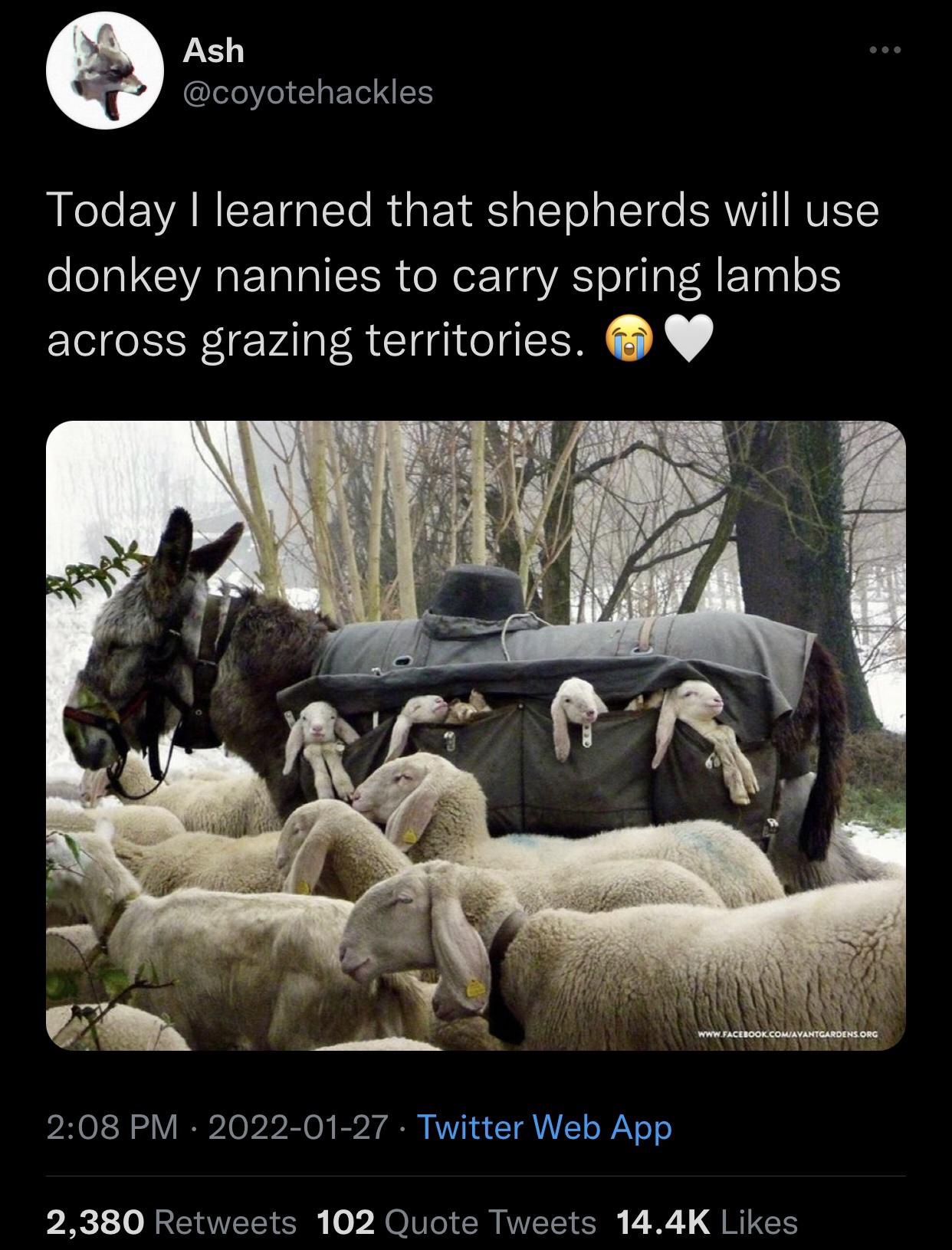 MattW03@lemmy.ca to Animals with Jobs@lemmy.worldEnglish · 8 days agoDonkey nannieslemmy.caimagemessage-square18fedilinkarrow-up1367arrow-down14