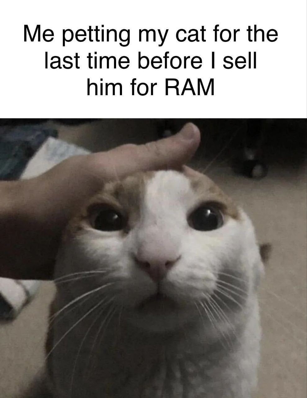 No way a cat would sell for enough to afford RAM, no matter how cute it is.