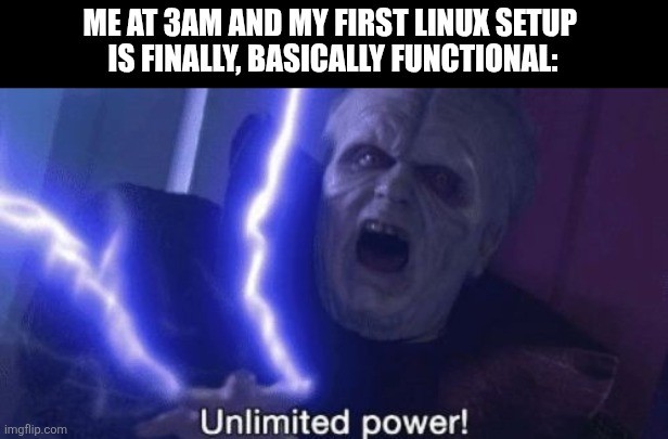 Me at 12:02am “Ooh! This distro looks interesting! I’ll just install it and configure it and add a few programs here and there”.