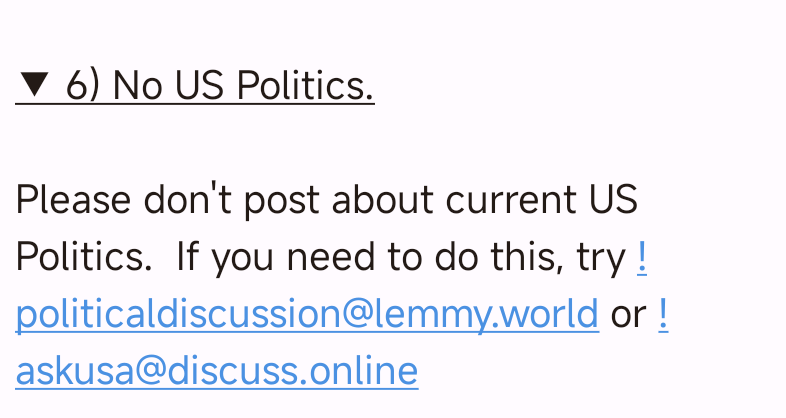 I’m going to leave this post up as it’s not actually about US politics, but about how the asklemmy community wants it to work.