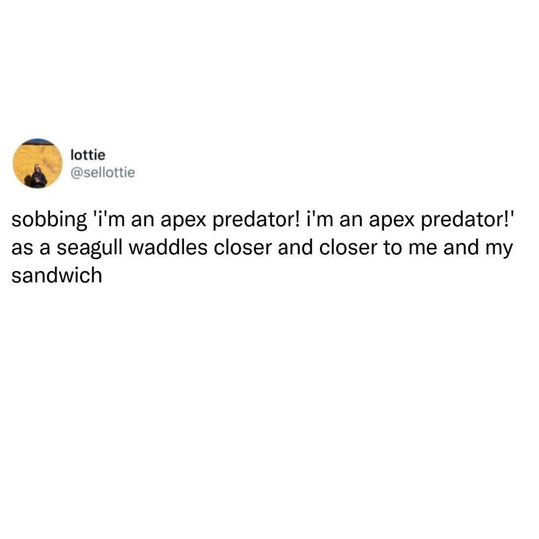 I’d argue humans aren’t even an apex predator, we kind of just tricked other animals into letting us eat them