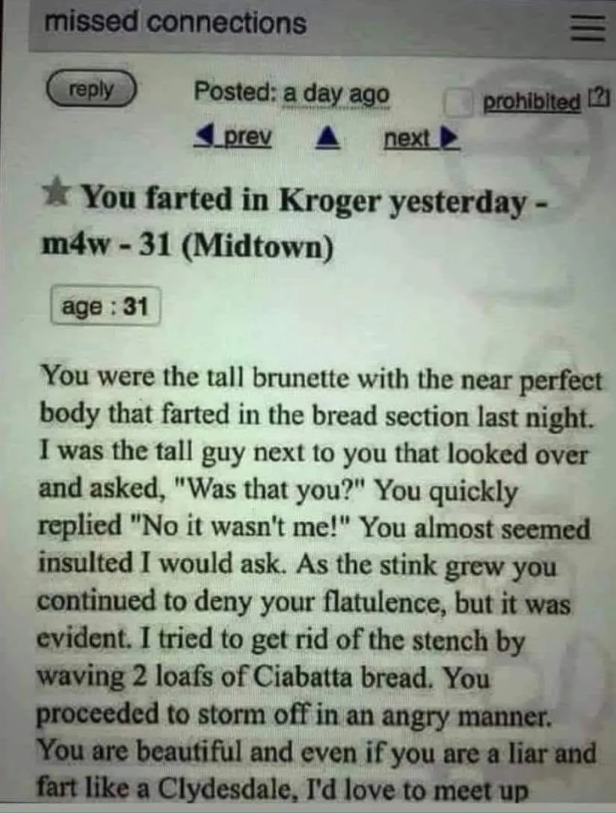 Missed connections is what we old timers used to read before there was reddit.
