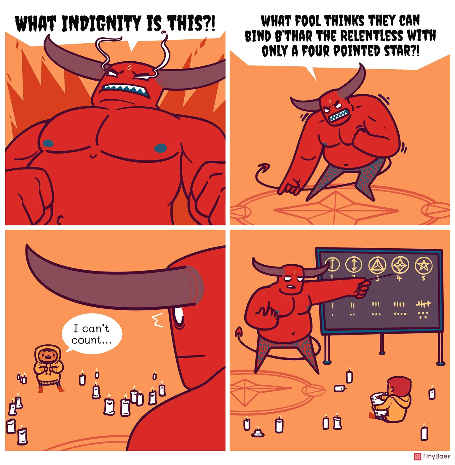 One thing I love about the old DnD books is how oddly specific they can be. There’s pages about how to draw correct summoning and binding circles for various beings.