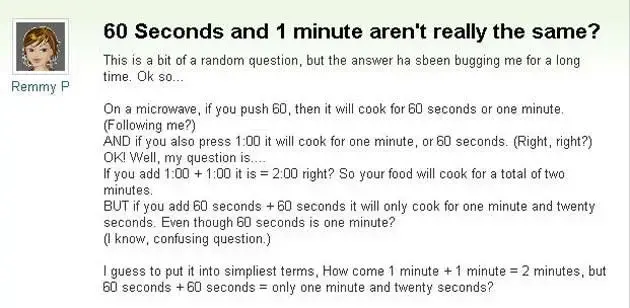 The thing that fascinates me is that every single digital microwave I’ve ever used behaves the same way, and allows the “seconds-place” to be 0-99.