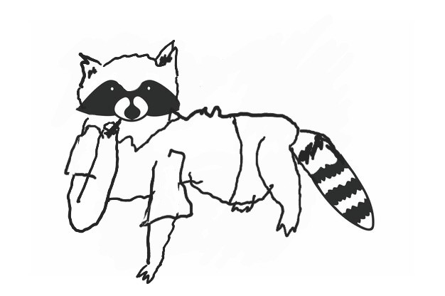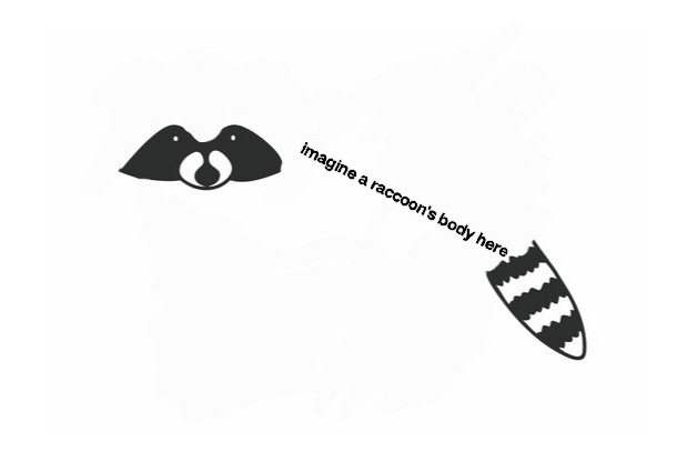 Instead of a racoon, I tried to pareidolia my way into some other animals! Funnily enough, I saw the birds eating something almost immediately, but had no idea what to do with the tail for a while.