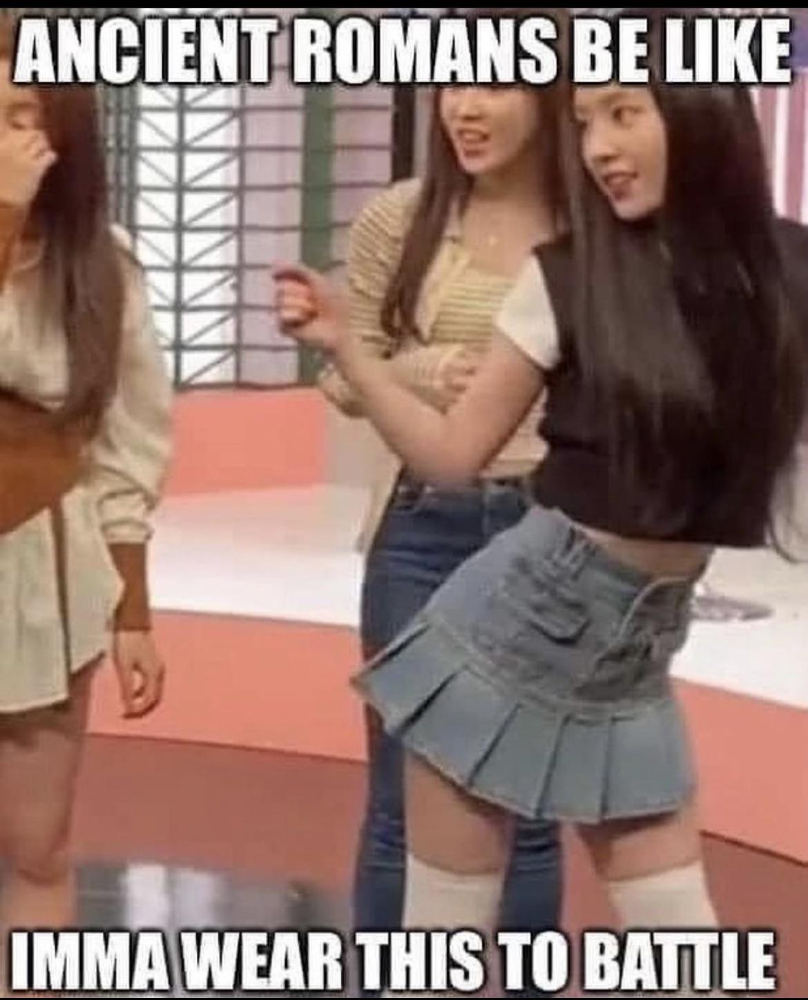 Explanation: Romans wore tunics, which generally did not reach the knees. Flexible and breathable! This includes the Roman Legions. Trousers were denigrated as ‘barbarian’, though Legions in northern areas and the later Empire would begin to wear them regularly.