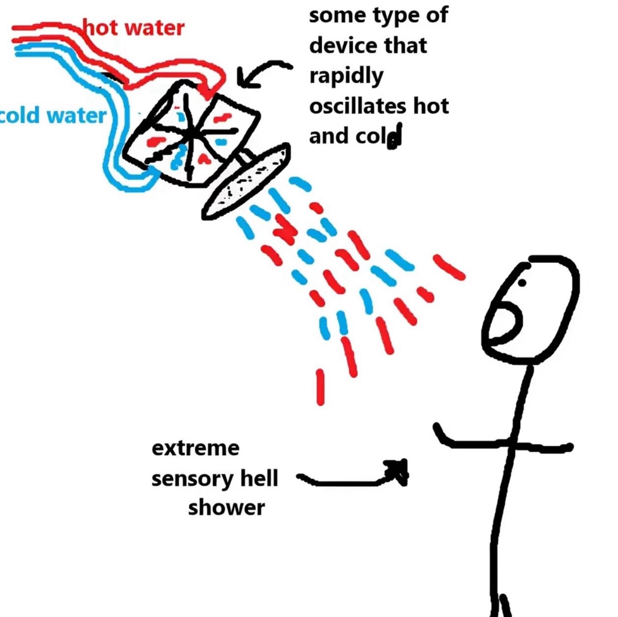 why would hot n cold playing (good) make the extreme sensory hell shower (good) worse?