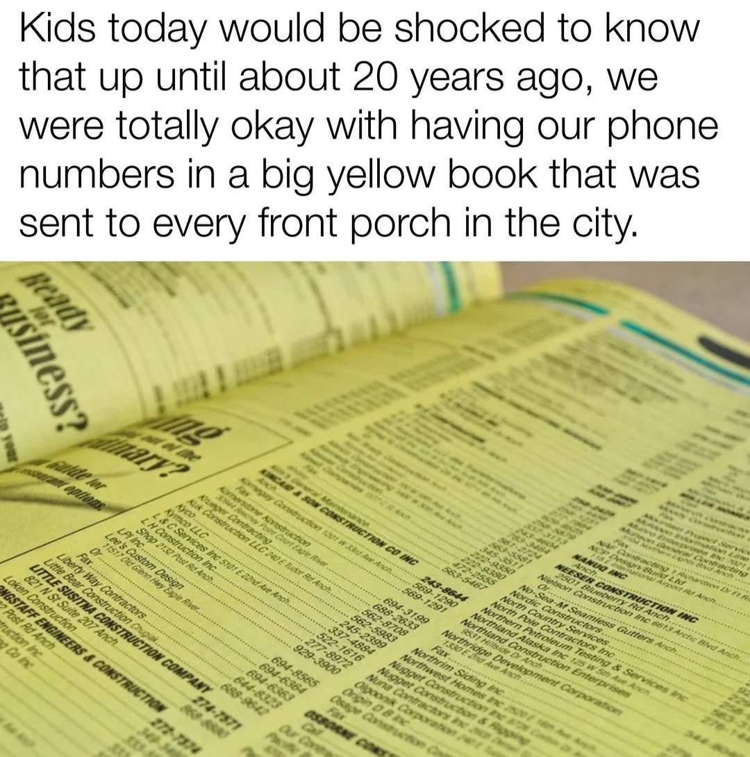 Then they’d drive around and drop them on peoples’ front steps. I knew people that made extra cash at Phone Book Delivery Season.