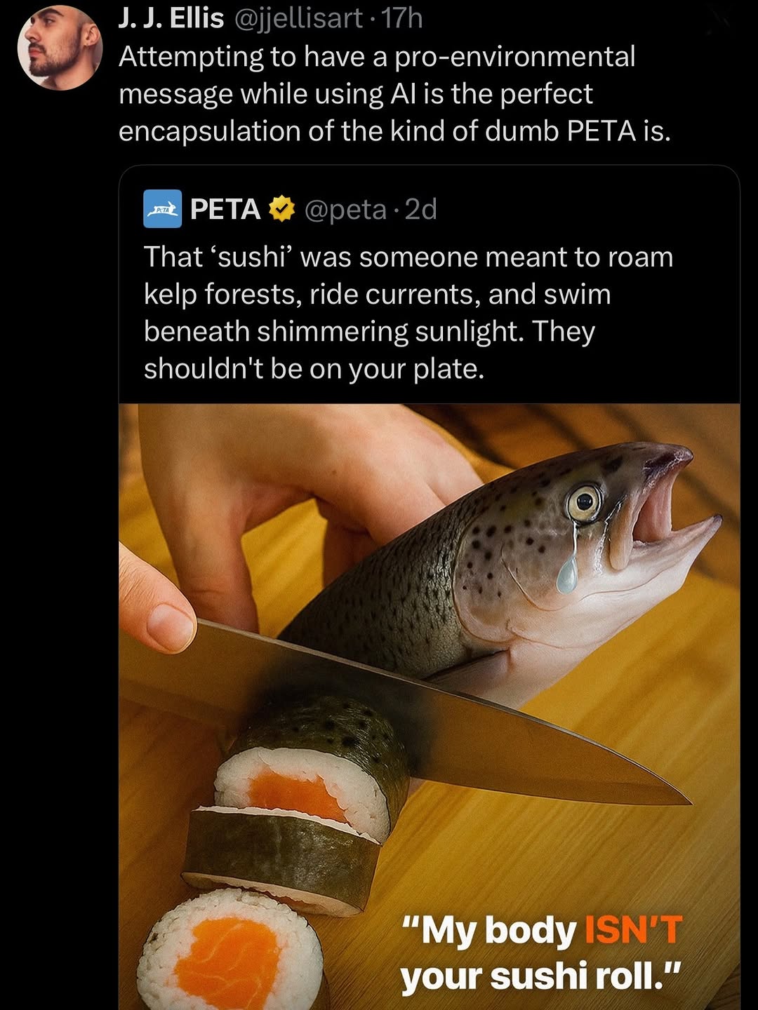 At the end of the day, PETA creates misinformation and isn’t on the side of good. They milk their supporters for more money and once in a while, gets a really good talking point but then botch it because of how stupid they present themselves.
