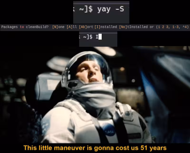 I had an AUR package once, that tried to install the entire fucking chromium repo.