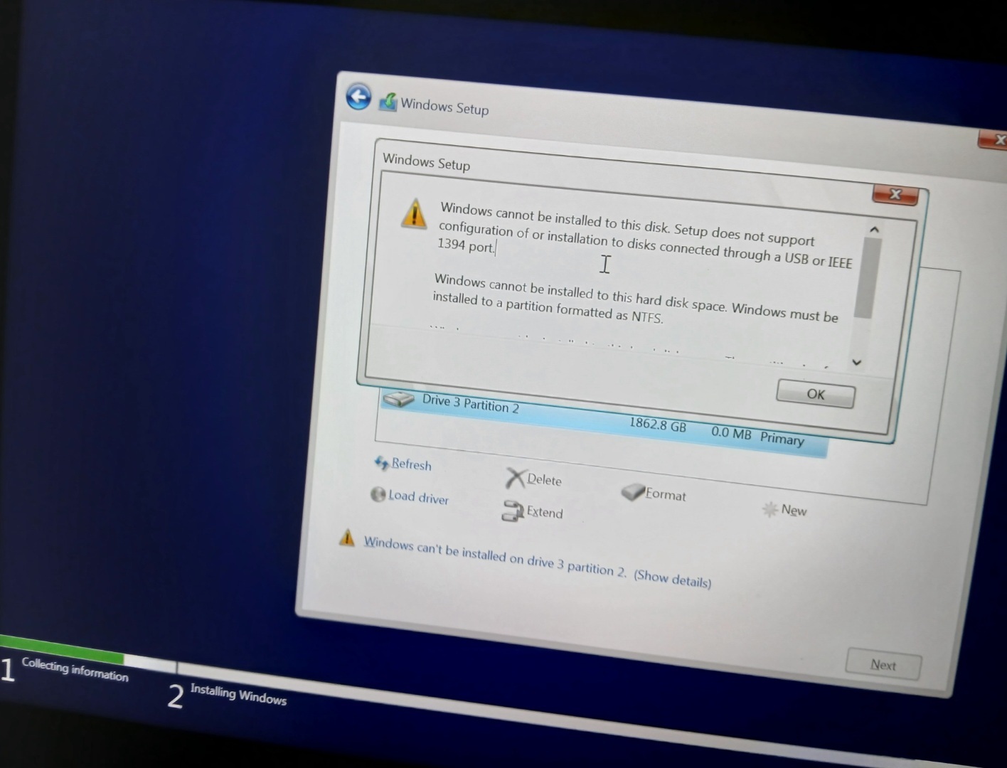That’s not the problem though. Even if you have no other OS installed, windows still refuses to install on external HDDs.
