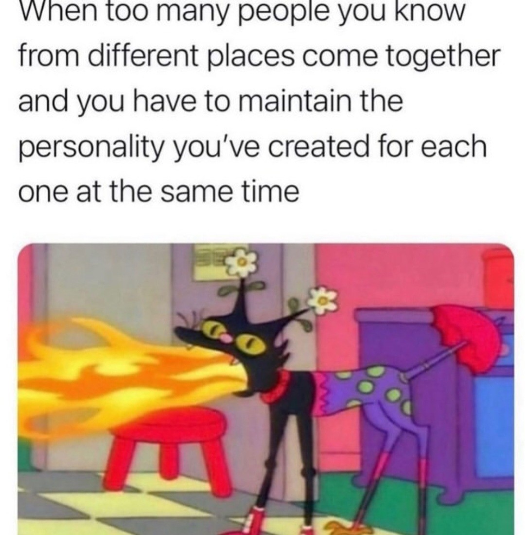 Yo have different personalities for each of your friends? Thats exhausting. I have the same one for all of mine. Everyone gets a version of Eda the owl lady that swears a lot.