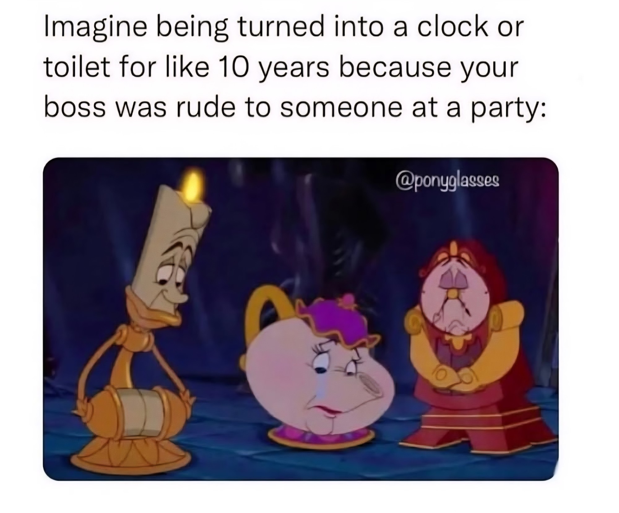 Hey, whoa, hold on. In terms of what would suck, there is a MASSIVE leap from being turned into a CLOCK vs being turned into a TOILET!
