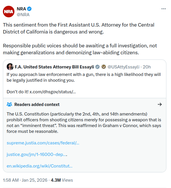 The right isn’t a monolith and is actually a political force because of how well it brings in single issue voters like gun advocates, pro lifers, and cops/racists. ICE is cracking those bonds and splitting apart the base. A bunch of the 2A crowd are furious at the notion of “legally having a gun on you” is reason to die. The law and order crowd think this is insane and is trying to make guns as the sign of a terrorist (nevermind the optics for ICE).