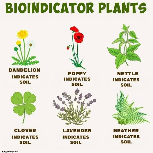 Some of these plants indicate nothing (dandelion and clover), not even that there is soil to begin with.