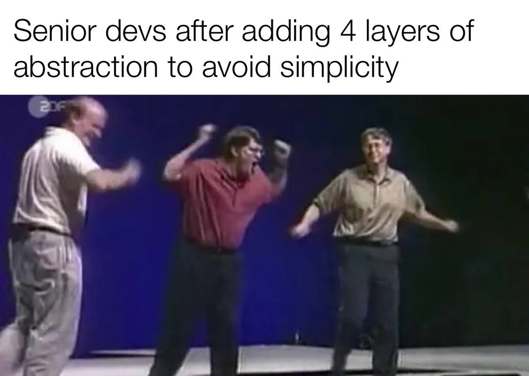 minus-squareidriss@lemmy.mllinkfedilinkarrow-up15·2 months agoOnly some in my experience, in one place a simple API has 7 layers of handlers and managers. I took care of another project that should be in theory way more complex and got on board in a few days as compared to years.