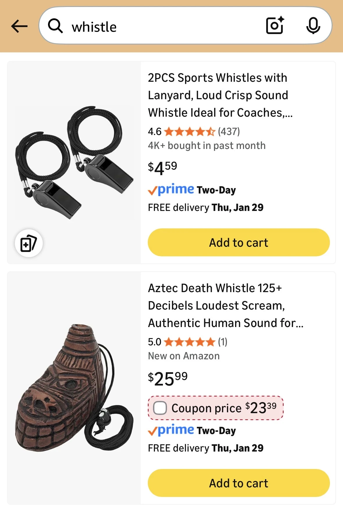 Find someone with a 3d printer. Your local library might have one even. I’m printing 55 whistles every 6 hours for around 7 cents a whistle.
