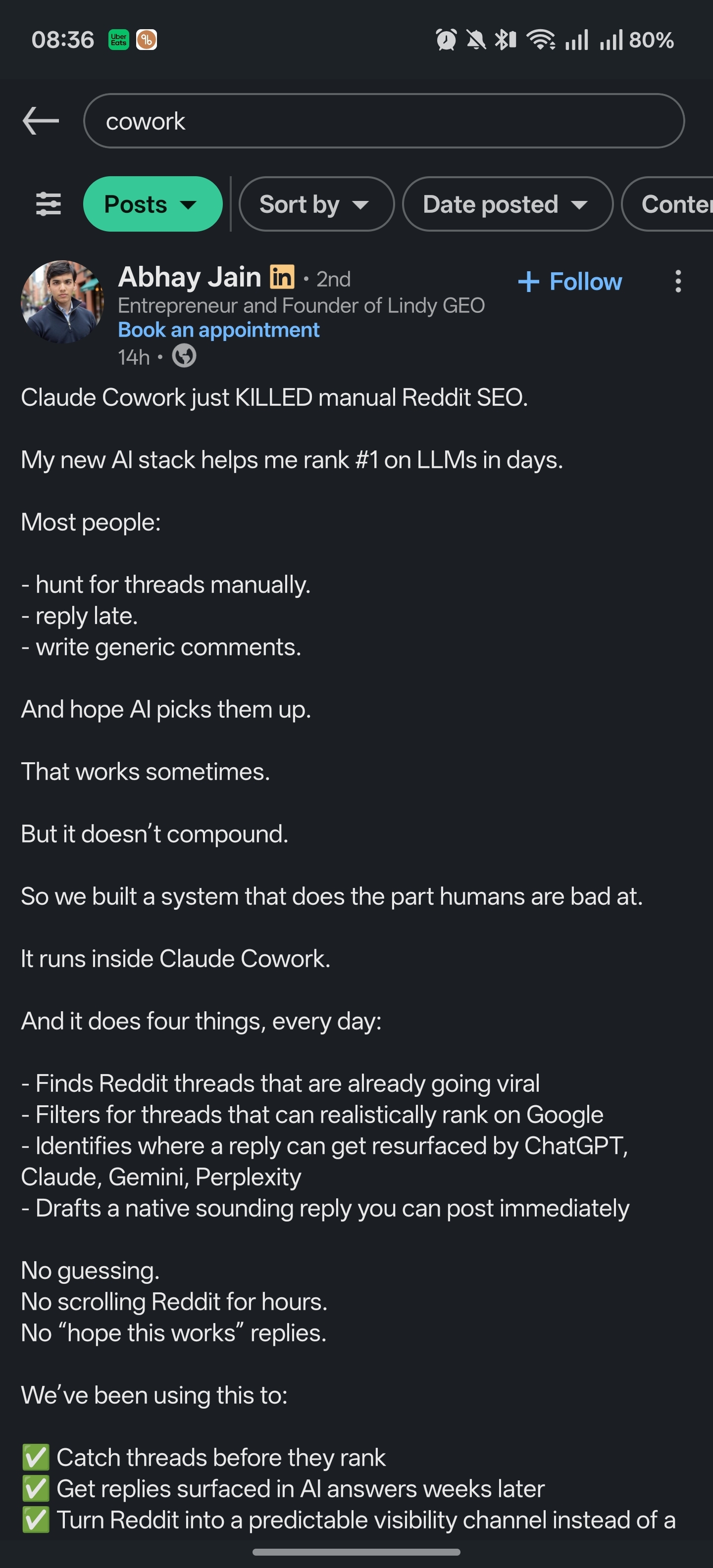 Eg: step one is done - figure out how to both find threads early & get your content picked up as a good answer regularly and consistently. Step 2 - start inserting ‘first hand’ recommendations or even just mentions of products and services.
