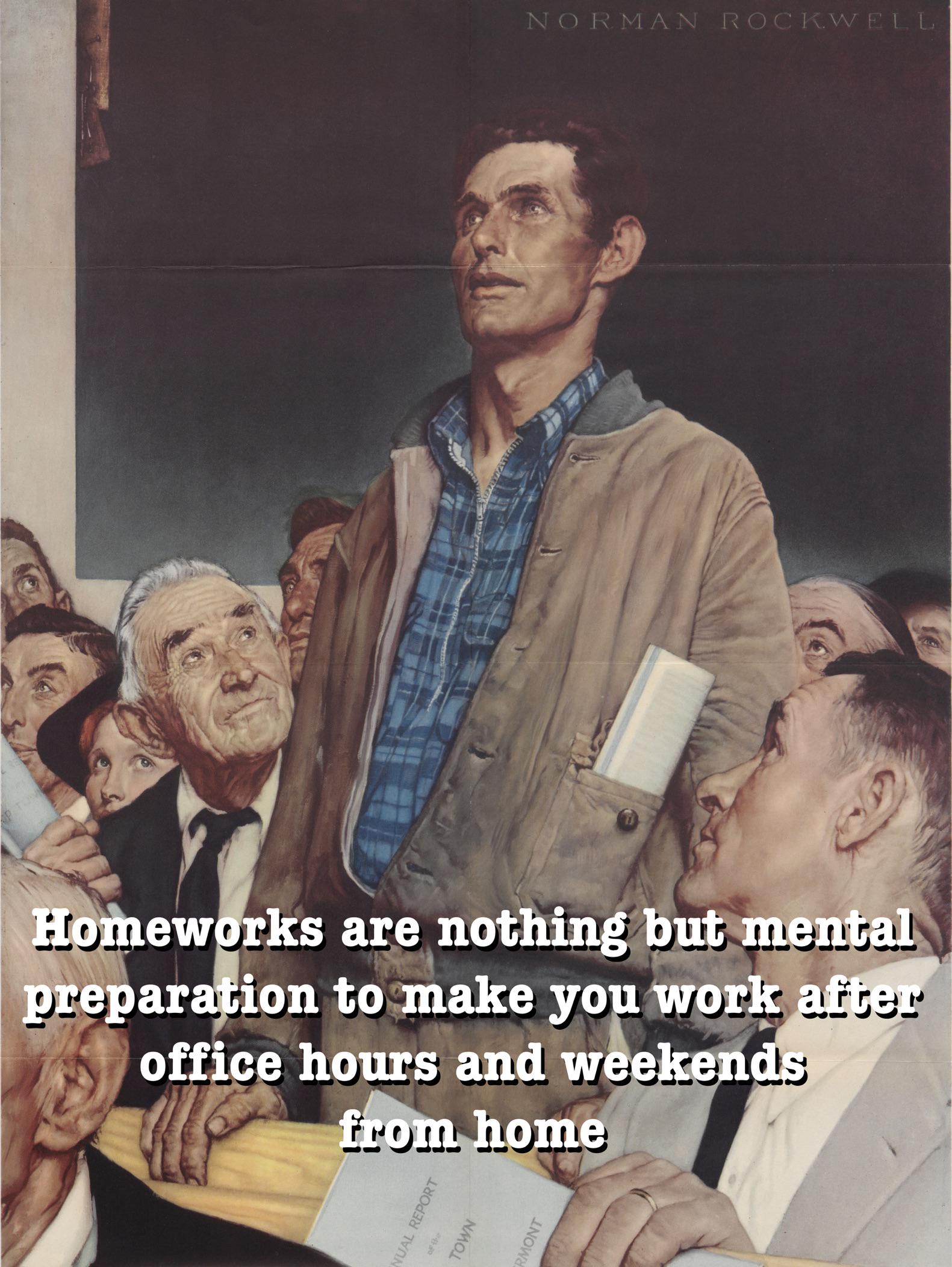 More importantly, homework teaches responsibility and self-accountability as well as time management. I hated it, I got through school without ever doing it, and I had to learn these things later on to my own detriment. But I had massive problems with authority caused by emotional incest from my mother, so it took a lot of work to re-parent myself into a successful person who could follow rules and realize they were sometimes there to help me.