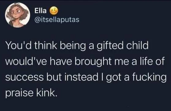 As a relatively intelligent autistic, I got into many cycles of pity and praise (pity (for being a worthless minority), praise (being smart and/or an intellectual) and pity when they inevitably figure out I can’t take as much stress as a naurotypical).