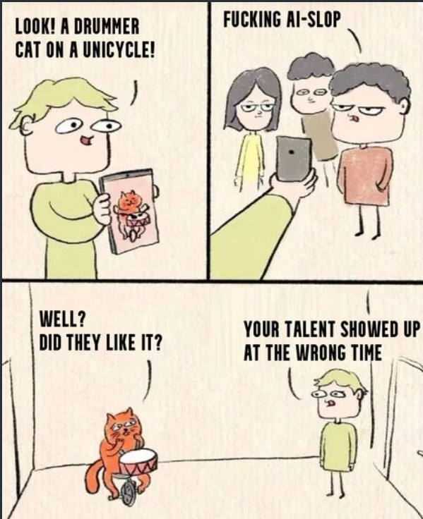 An AI slop meme making fun of AI slop. Such meta!